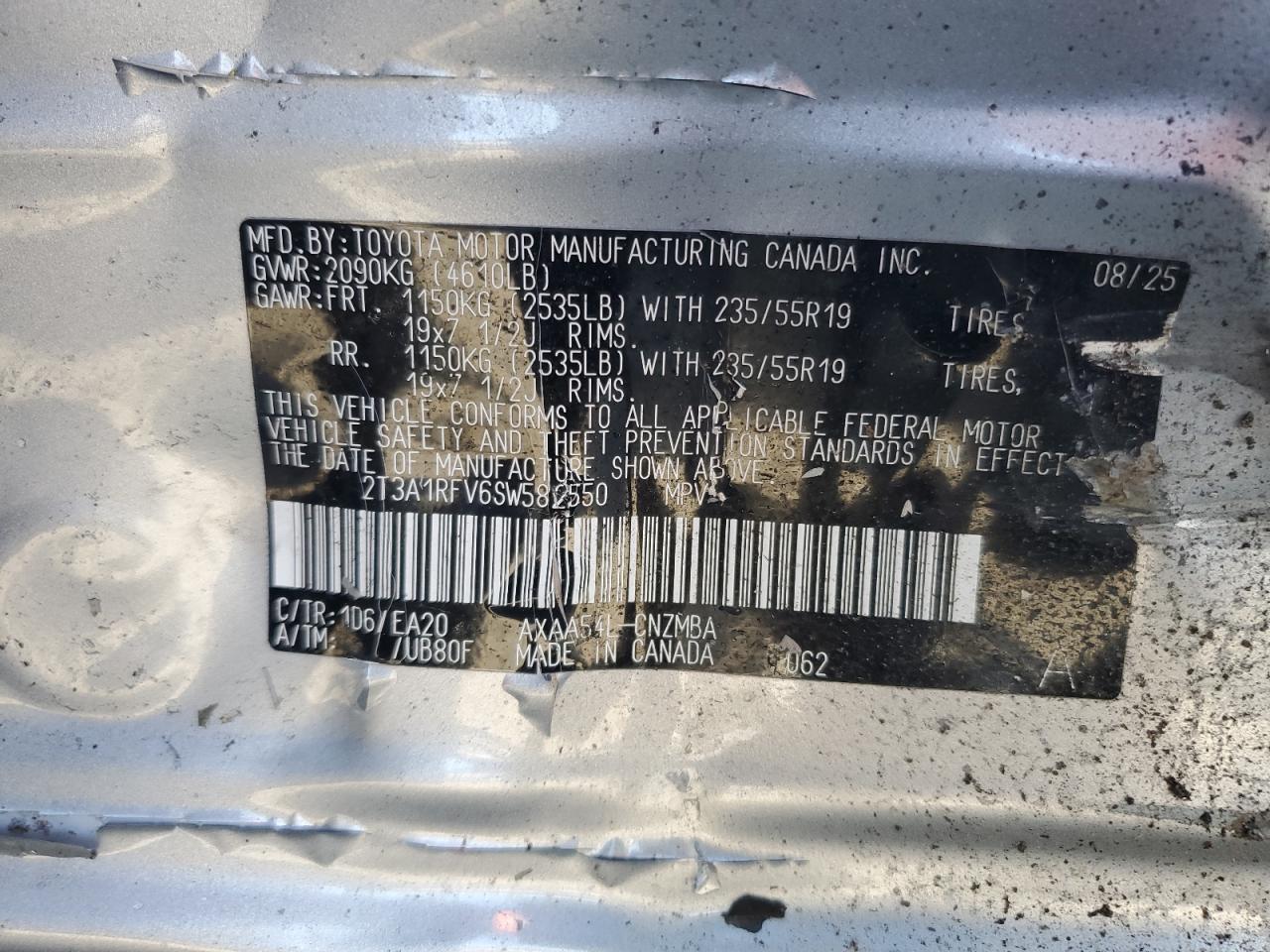 2025 TOYOTA RAV4 2025 року Бензин, 2.5, Повний привід, vin - 2T3A1RFV6SW582550 з США