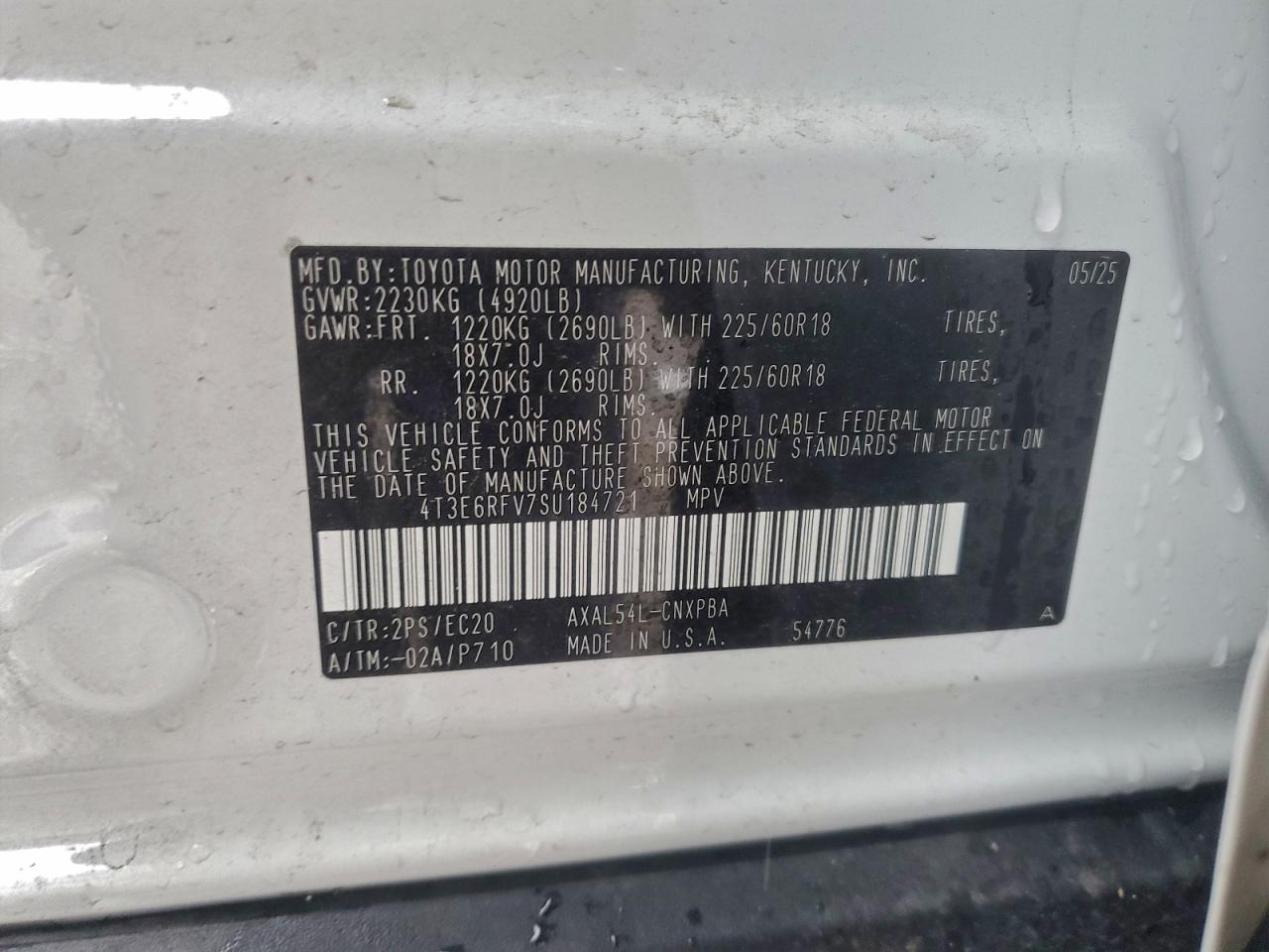 2025 TOYOTA RAV4 2025 року Гібрид, 2.5, Повний привід, vin - 4T3E6RFV7SU184721 з США