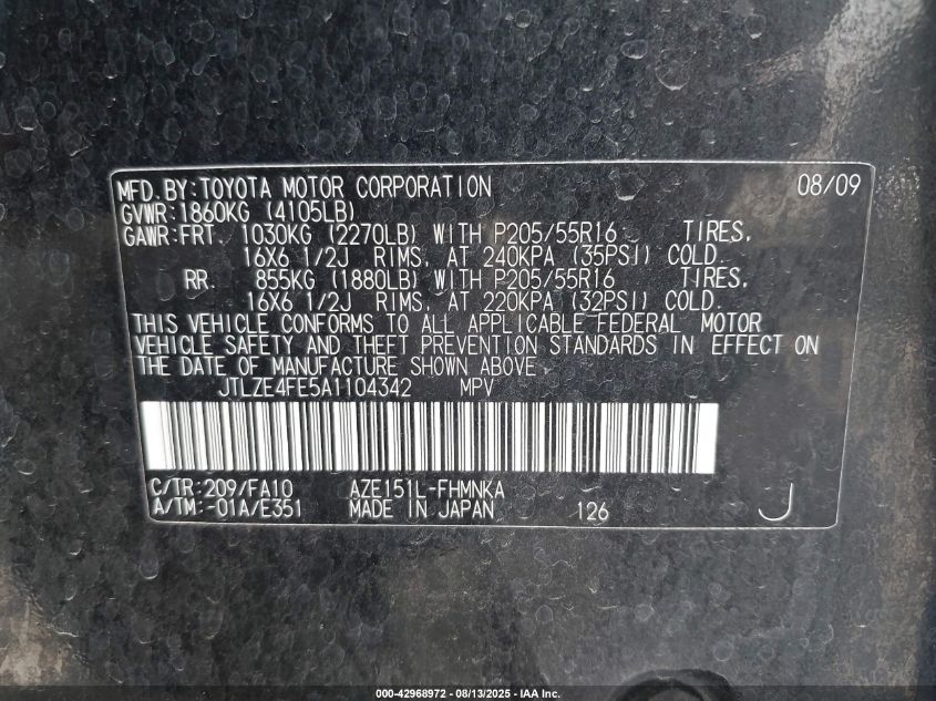 Колір ЧорнийЦиліндри 4Привід Передній привідVIN JTLZE4FE5A1******Стан НевідомоУшкодження Передня або задняДата аукціону 2025-09-04