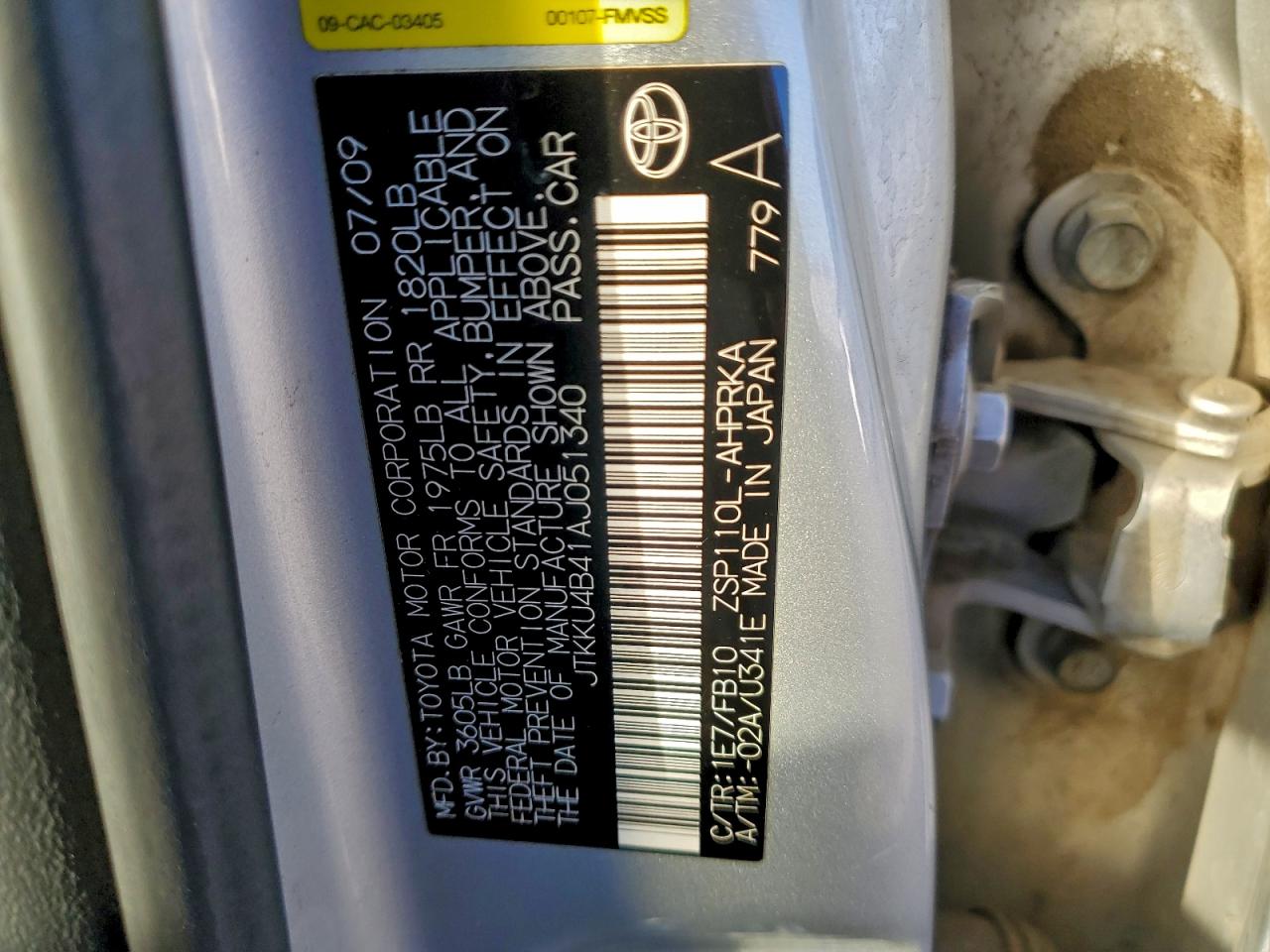 Колір СрібнийЦиліндри 4VIN JTKKU4B41AJ051340Стан Заводиться та їде (перевірено)Ушкодження Передня або задняДата аукціону 2025-12-05