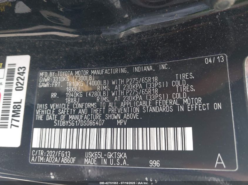 2013 TOYOTA SEQUOIA LIMITED