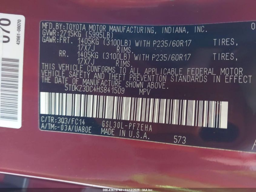 2017 TOYOTA SIENNA