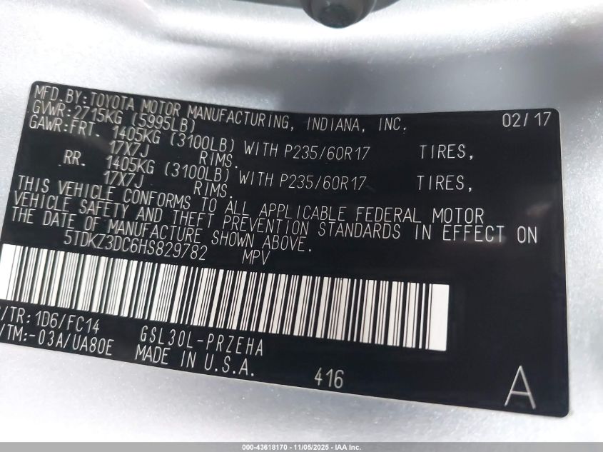 2017 TOYOTA SIENNA