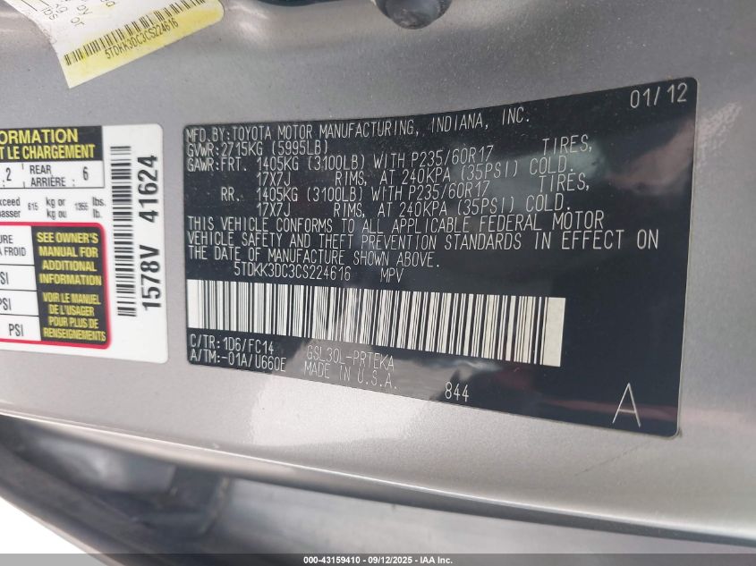 2012 TOYOTA SIENNA XLE