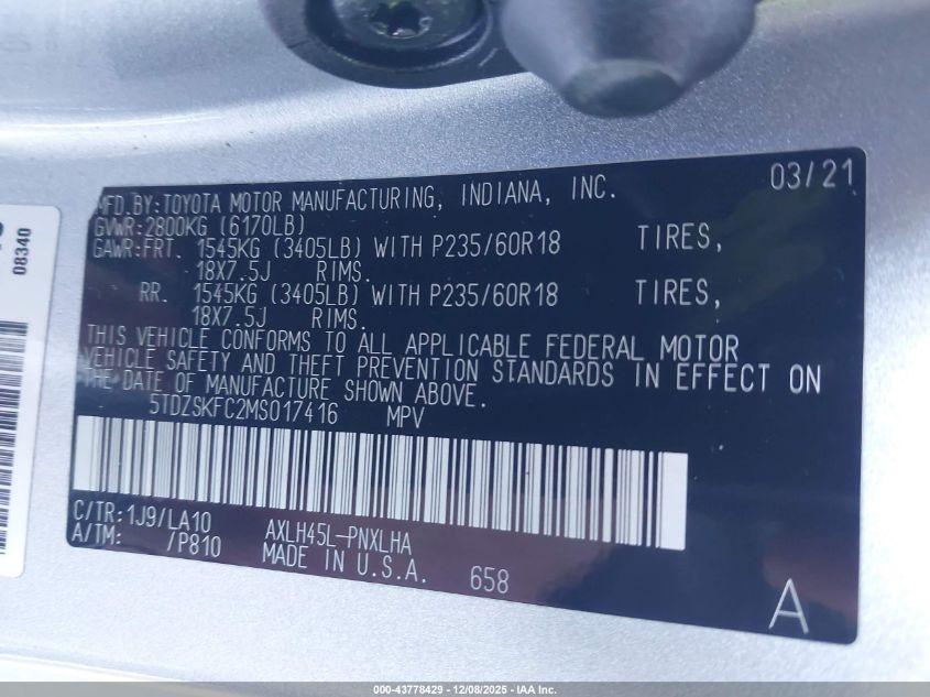 2021 TOYOTA SIENNA LIMITED