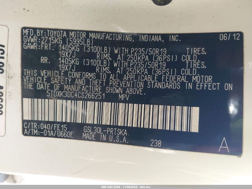 Колір БілийЦиліндри 6Привід Передній привідVIN 5TDXK3DC4CS266251Стан Заводиться та їде (перевірено)Ушкодження Ліва сторона AutoRIA
