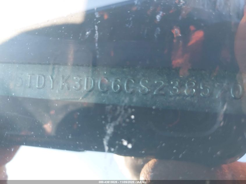 Колір СірийЦиліндри 6Привід Передній привідVIN 5TDYK3DC6CS238570Стан Заводиться та їде (перевірено)Ушкодження Передня ліва AutoRIA