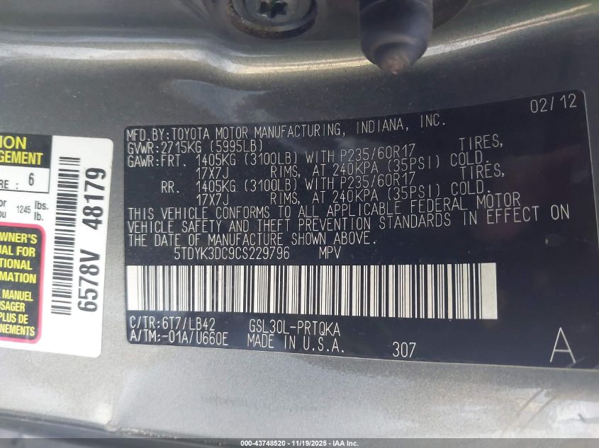 Колір СірийЦиліндри 6Привід Передній привідVIN 5TDYK3DC9CS229796Стан СтаціонарноУшкодження Перекидання AutoRIA