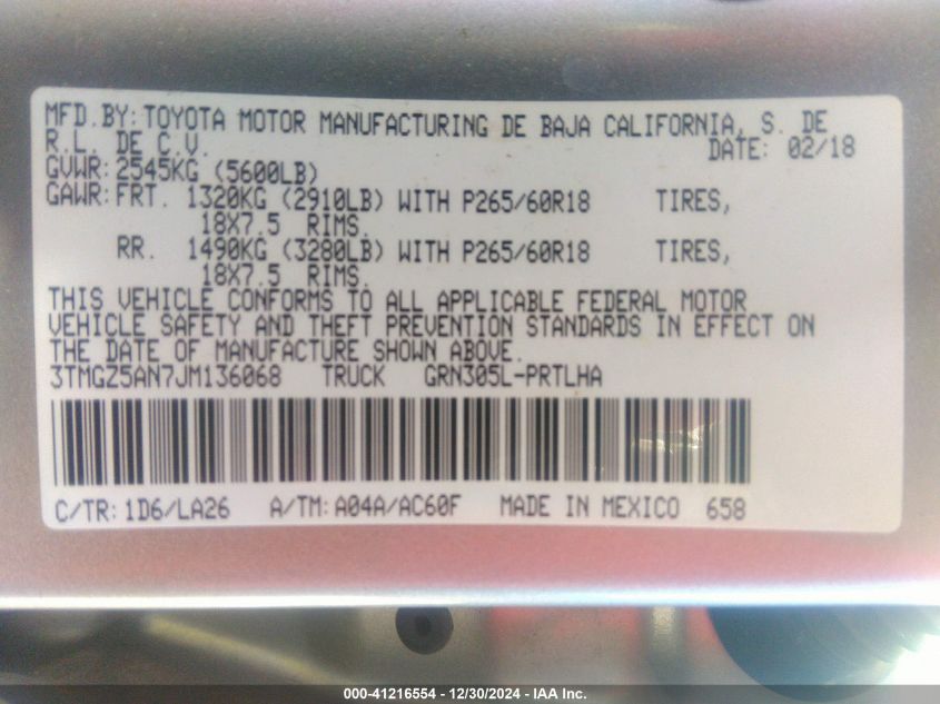 2018 TOYOTA TACOMA DOUBLE CAB
