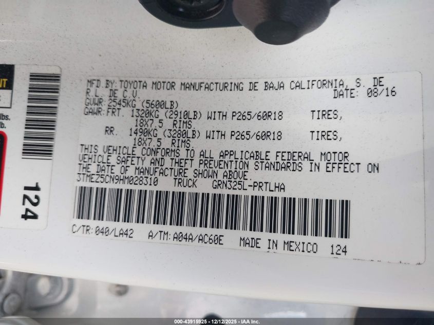 2017 TOYOTA TACOMA DOUBLE CAB