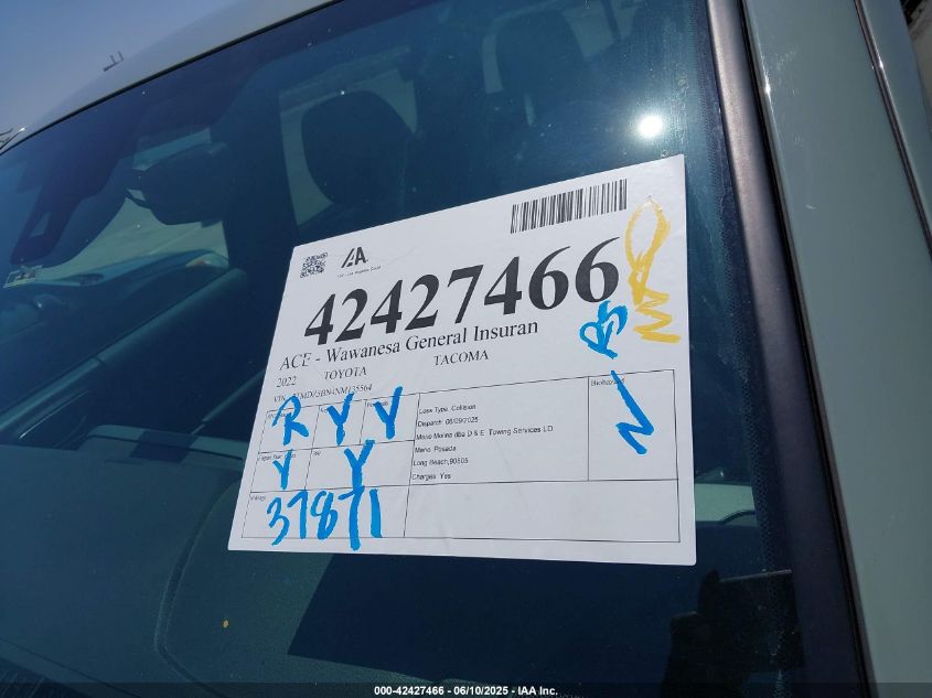 2022 TOYOTA TACOMA 2022 року Бензин, 3.5, Повний привід, vin - 3TMDZ5BN4NM****** з США
