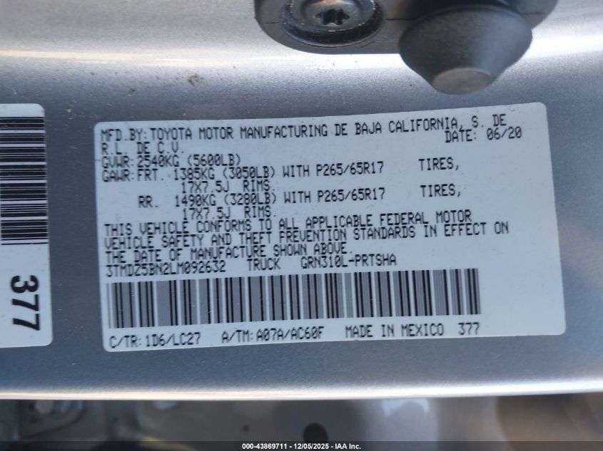 2020 TOYOTA TACOMA 2020 року Бензин, 3.5, Повний привід, vin - 3TMDZ5BN2LM092632 з США