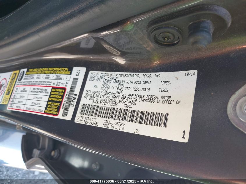 2015 TOYOTA TUNDRA 2015 року Бензин, 5.7, Невідомо, vin - 5TFRY5F12FX****** з США