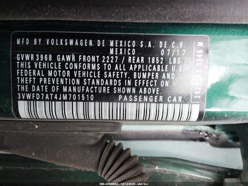 Колір ЗеленийЦиліндри 4Привід Передній привідVIN 3VWFD7AT4JM701510Стан СтаціонарноУшкодження Передня або задня AutoRIA