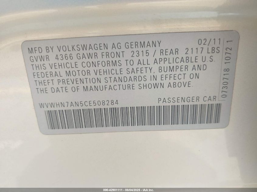 2012 VOLKSWAGEN CC LUXURY
