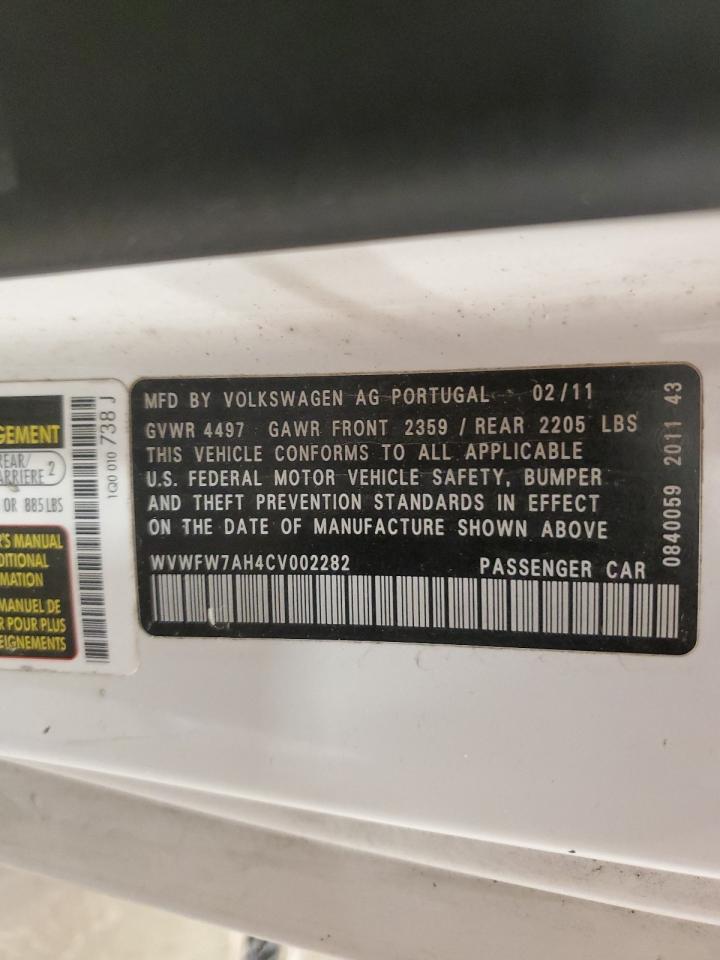 2012 VOLKSWAGEN EOS 2012 року Бензин, 2.0, , vin - WVWFW7AH4CV002282 з США