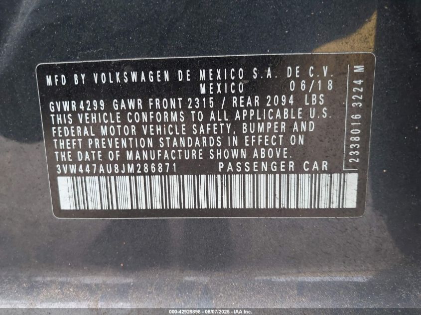 2018 VOLKSWAGEN GOLF GTI 2018 року Бензин, 2.0, Передній привід, vin - 3VW447AU8JM****** з США