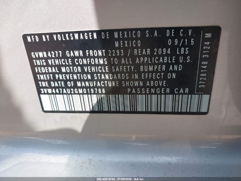 2016 VOLKSWAGEN GOLF GTI 2016 року Бензин, 2.0, Передній привід, vin - 3VW447AU2GM019766 з США