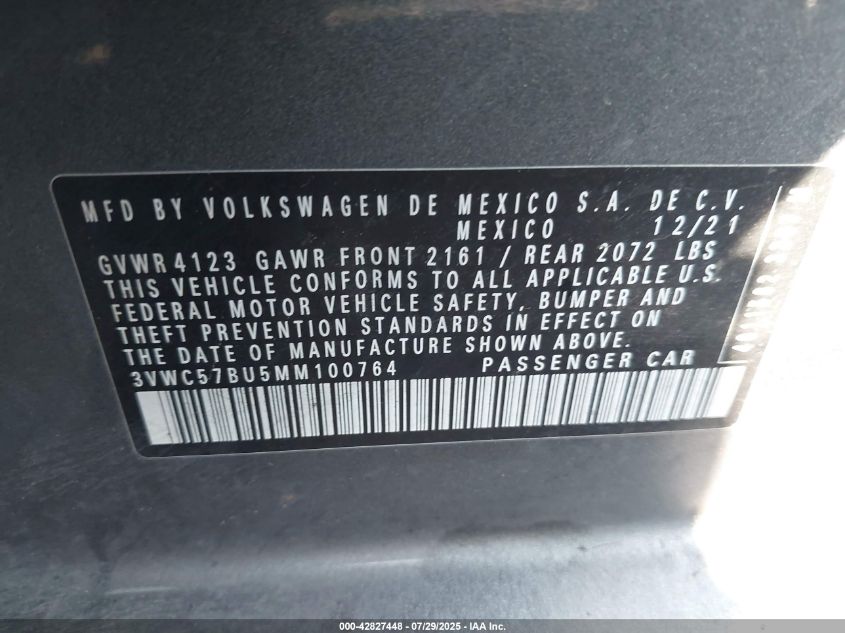 2021 VOLKSWAGEN JETTA 2021 року Бензин, 1.4, Передній привід, vin - 3VWC57BU5MM****** з США