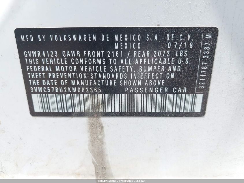 2019 VOLKSWAGEN JETTA S