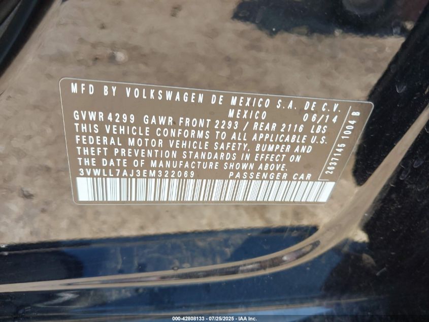 2014 VOLKSWAGEN JETTA 2014 року Дизель, 2.0, Передній привід, vin - 3VWLL7AJ3EM322069 з США