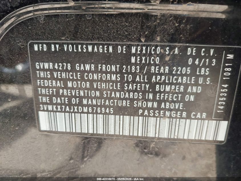 2013 VOLKSWAGEN JETTA 2013 року Бензин, 2.5, Передній привід, vin - 3VWKX7AJXDM****** з США