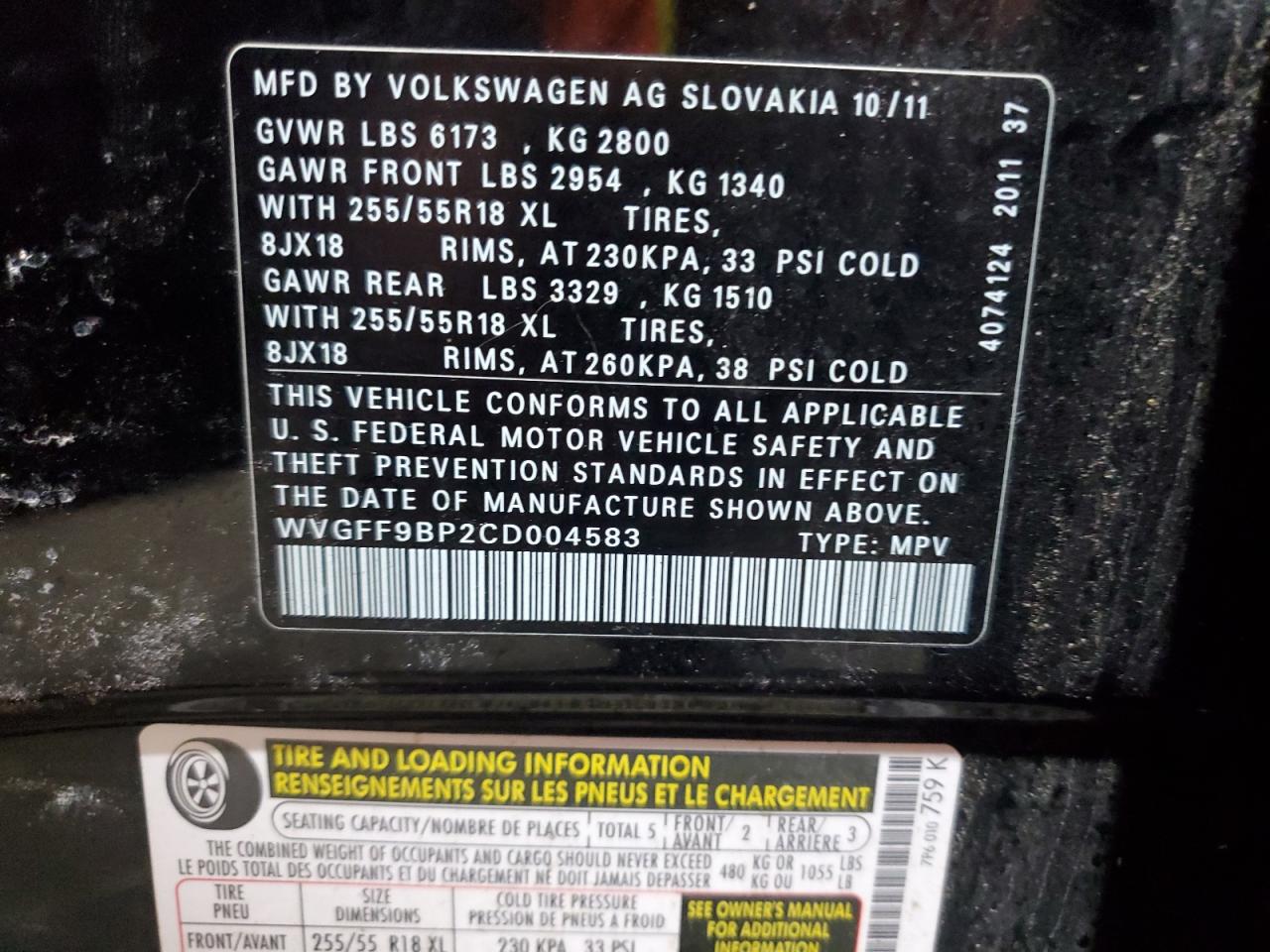 2012 VOLKSWAGEN TOUAREG V6