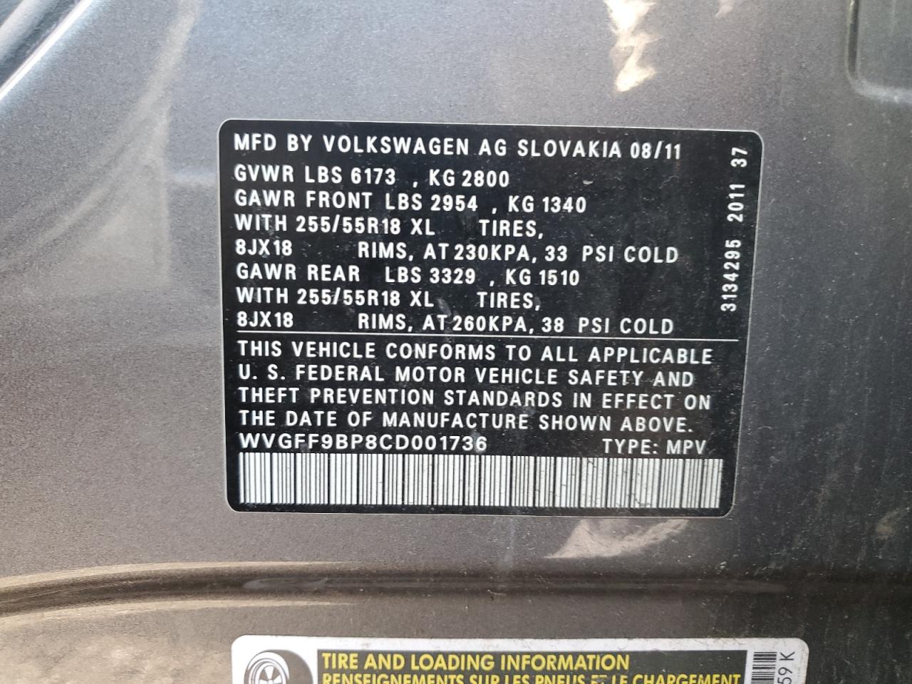 2012 VOLKSWAGEN TOUAREG V6