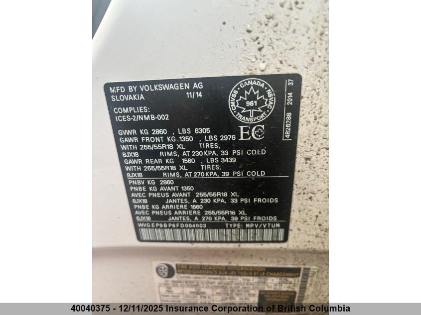 2015 VOLKSWAGEN TOUAREG V6