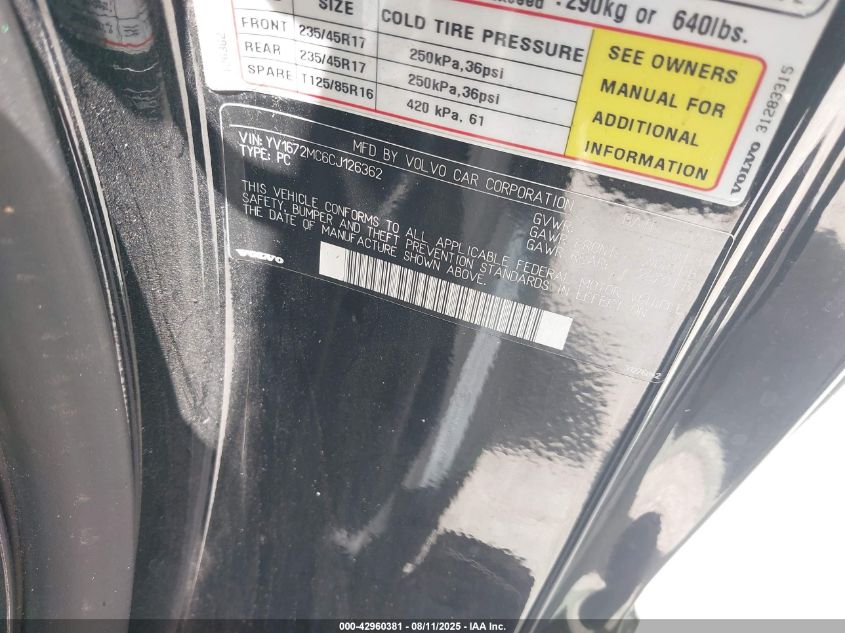 Колір ЧорнийЦиліндри 5Привід Передній привідVIN YV1672MC6CJ******Стан НевідомоУшкодження Передня ліваДата аукціону 2025-09-15