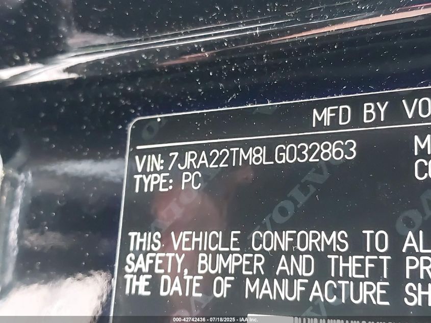 2020 VOLVO S60 2020 року Бензин, 2.0, Повний привід, vin - 7JRA22TM8LG****** з США
