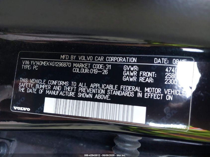 Колір ЧорнийЦиліндри 4Привід Передній привідVIN YV140MEK4G1******Стан НевідомоУшкодження Передня праваДата аукціону 2025-09-10