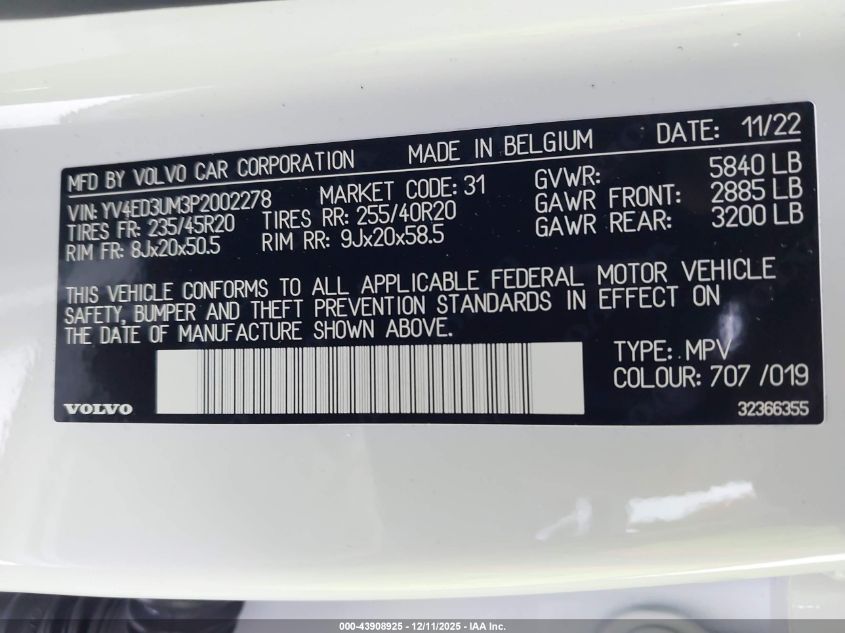 Колір БілийПривід Повний привідVIN YV4ED3UM3P2002278Стан Заводиться та їде (перевірено)Ушкодження Передня ліва AutoRIA