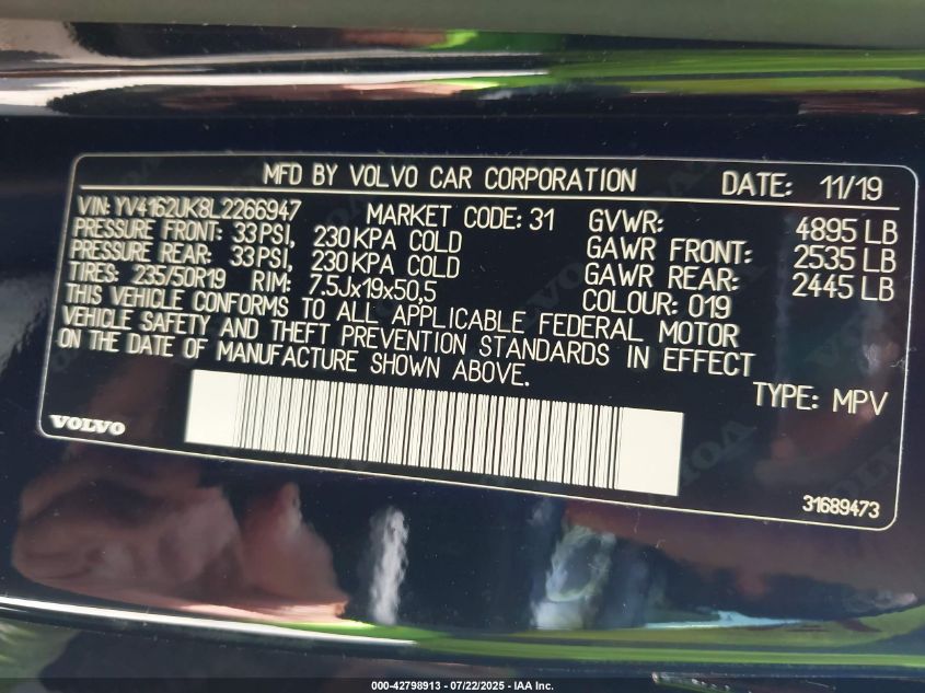 2020 VOLVO XC40 2020 року Бензин, 2.0, Повний привід, vin - YV4162UK8L2****** з США