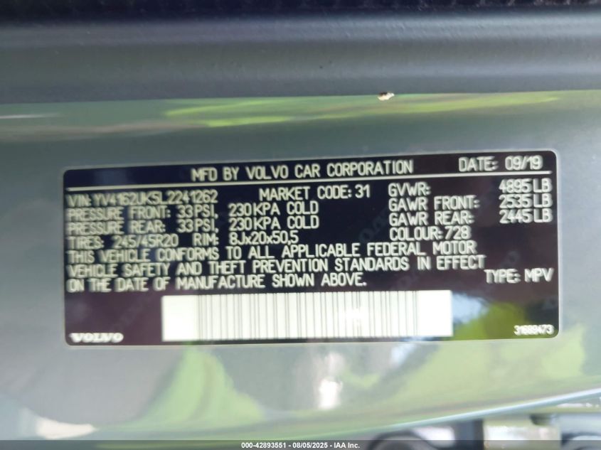 2020 VOLVO XC40 2020 року Бензин, 2.0, Повний привід, vin - YV4162UK5L2****** з США
