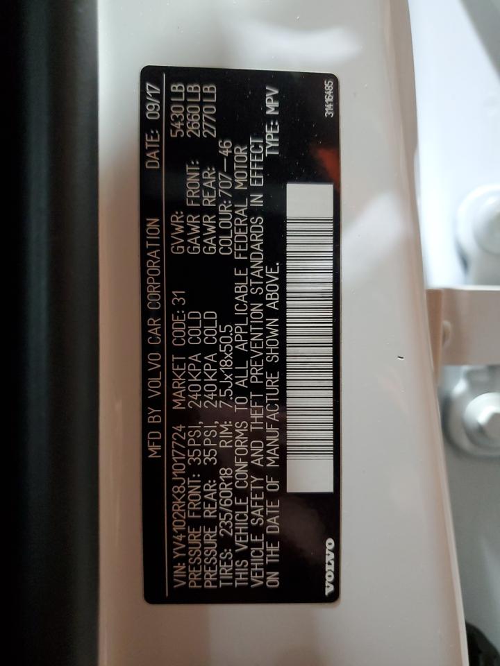 2018 VOLVO XC60 2018 року Бензин, 2.0, Повний привід, vin - YV4102RK8J1017724 з США